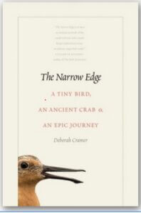 “Each year tiny sandpipers—red knots—undertake a near miraculous 19,000-mile journey from one end of the earth to the other and back. In this firsthand account, Deborah Cramer accompanies them on their extraordinary odyssey along the length of two continents, tracking birds from remote Tierra del Fuego to the icy Arctic. On the full moon of spring’s highest tides, she seeks out horseshoe crabs, ancient, primordial animals whose eggs are essential to migrating shorebirds, and whose blue blood, unbeknownst to most people, safeguards human health. The Narrow Edge offers unique insight into how the lives of humans, red knots, and horseshoe crabs are intertwined, and is an inspiring portrait of loss and resilience, of the tenacity of birds, and the courage of the many people who bird by bird and beach by beach, keep red knots flying.”